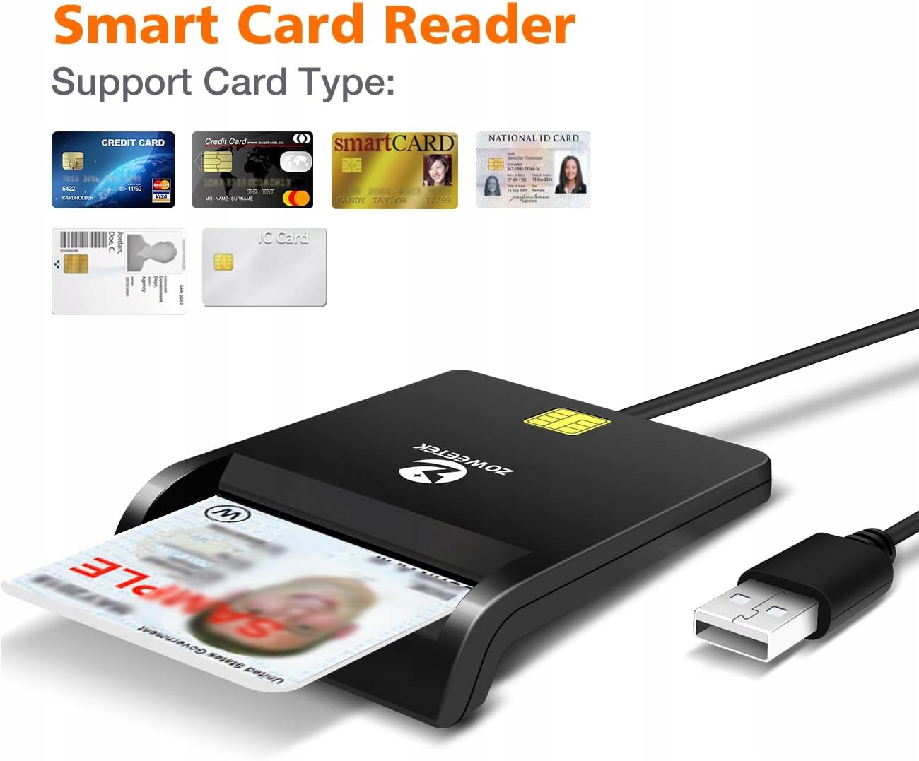 Zoweetek Czytnik kart identyfikacyjnych USB czytnik kart inteligentnych