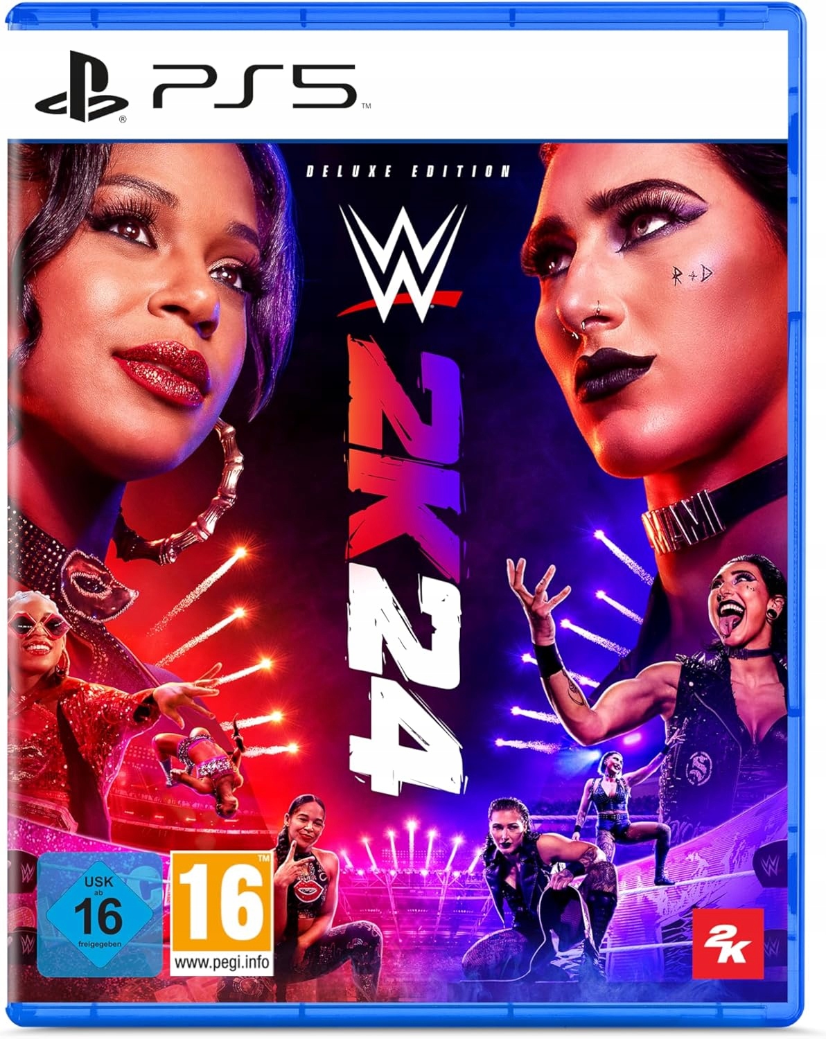 WWE 2K24 może pochwalić się gwiazdorską obsadą z legendami WWE, takimi jak „Stone Cold” Steve Austin, Undertaker czy Andre the Giant, obok obecnych supergwiazd WWE, takich jak „The American Nightmare” Cody Rhodes, John Cena, Rhea Ripley i Roman Reign, których charakterystyczne animacje są spotęgowane przez niezwykle realistyczną grafikę.