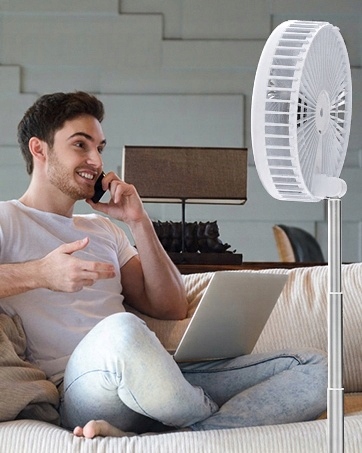Elastyczna konstrukcja składana i teleskopowa – wysokość wentylatora stojącego można w pełni regulować w zakresie od 9,4 cm do 100 cm, z kątem obrotu 90° i regulowanym kątem nachylenia 180 stopni, dzięki czemu masz większy wybór wysokości i kąta. Zapewnia bardziej efektywną dystrybucję powietrza i duży obszar wiatru, dzięki czemu możesz cieszyć się chłodnym powietrzem z różnych kierunków.
